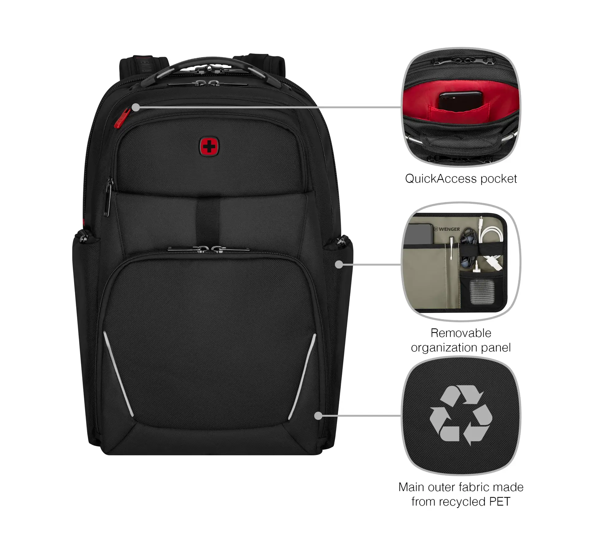 Kies de Meteor-laptoprugzak voor de ultieme combinatie van stijl en functionaliteit. Het Triple Protect-vak beschermt je laptop optimaal, terwijl het verwijderbare organisatiepaneel ervoor zorgt dat je spullen altijd binnen handbereik zijn. De buitenstof is gemaakt van gerecyclede PET-flessen, waardoor deze tas een duurzame keuze is.